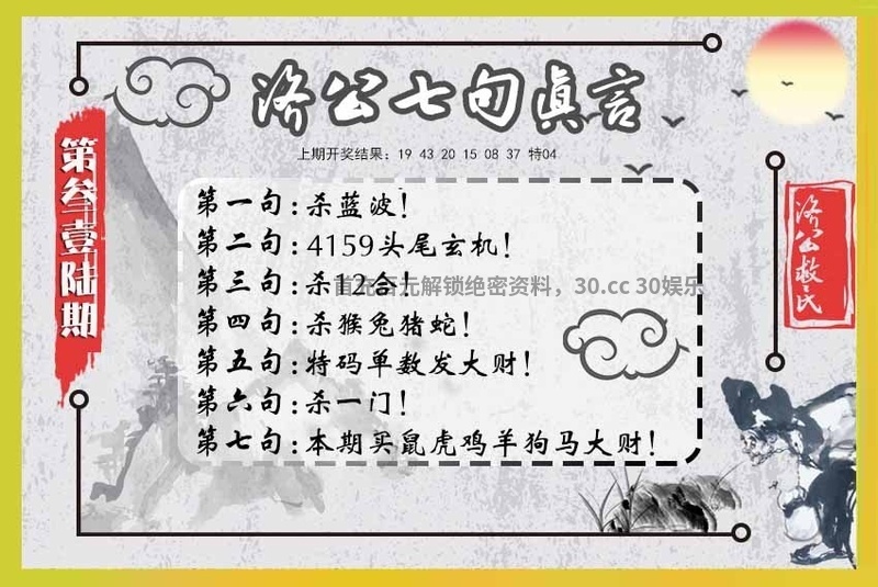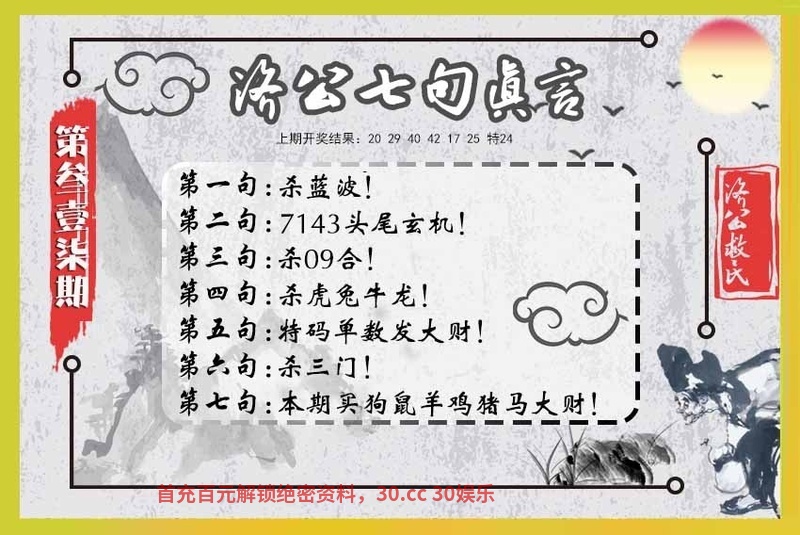 320期:白姐特段/简单发财诗/马会欲钱料/七娘一句中/开藏特图料